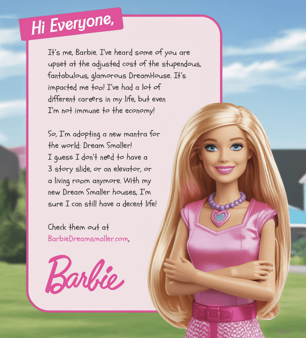 The United States is in such a severe housing crisis. even Barbie is impacted.